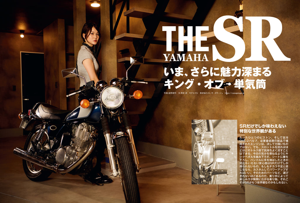 1978年に登場し、2021年に惜しまれながらも長い歴史にピリオドを打った「ヤマハSR400」。絶版モデルになって以降も「SRに乗りたい」と想いを巡らせる人は少なくありません。たったひとつのピストン、吸排気バルブもそれぞれひとつ、さらにカムシャフトもひとつ、加えてセルスターターさえも装備しておらず、わざわざキックを踏み込んで始動する、極めてシンプルこのうえないエンジン――。ですが、これこそが多くの人を魅了しているのです。この号より誌面の大幅なリニューアルを図った『タンデムスタイル』、その特集第1弾は「いまこそ魅力極まるキング・オブ・単気筒~THE YAMAHA SR」です。登場した1978年から生産を終えるまでの43年間に渡って、基本設計やデザインを大きく変更することなく販売され続けたことでも稀有な存在のSR、その魅力を実際に所有しているオーナーや、SRにこだわってカスタムを行なっている老舗専門店、さらにはSR誕生のきっかけにもなったといわれる伝説のレーシングマシンなどなど、さまざまな観点から“SRを所有する喜びや楽しさ”をひも解いていきます。