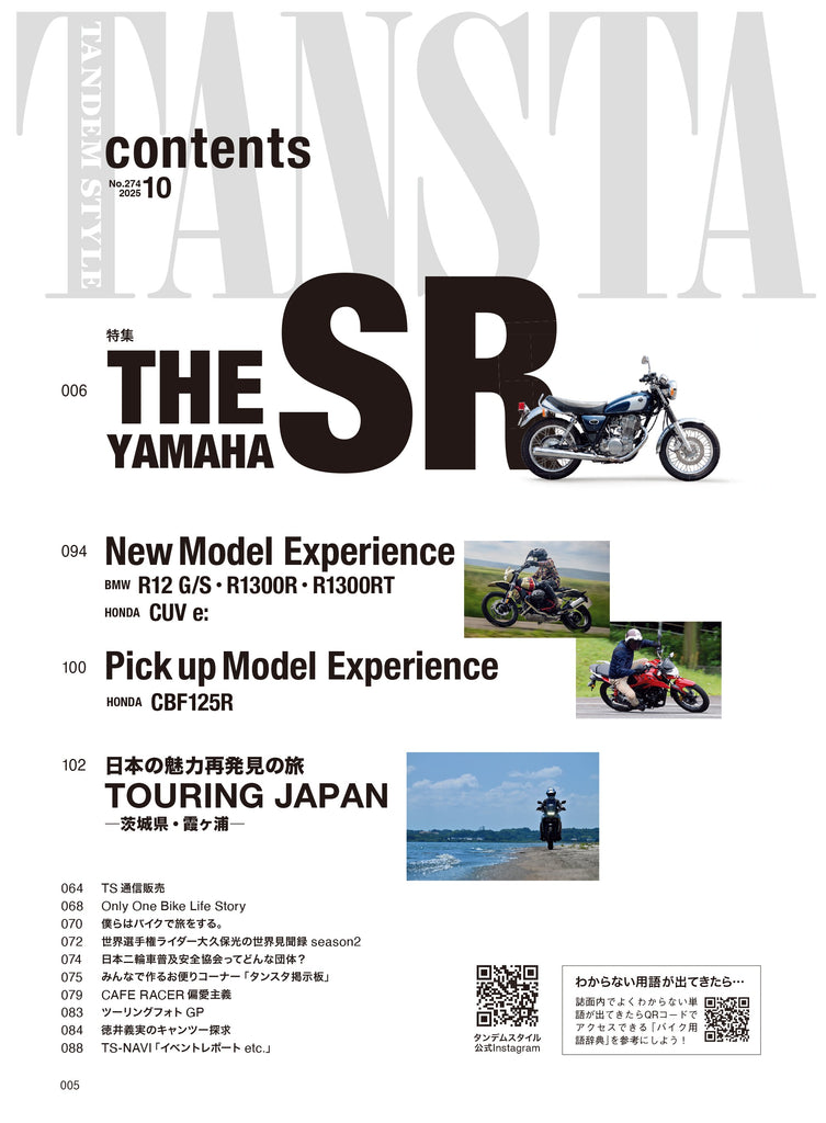 タンデムスタイル 2025年10月号 Vol.274「いまこそ魅力極まるキング・オブ・単気筒~THE YAMAHA SR」(2025/8/22発売)